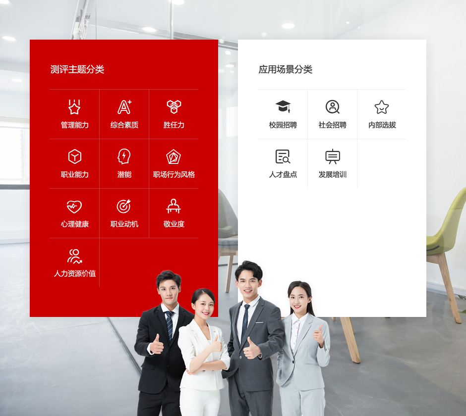 萬保人力可為企業(yè)提供管理能力、勝任力、職業(yè)能力、潛能、職業(yè)動機、行為風(fēng)格、心理健康等多種能力和素質(zhì)類測評內(nèi)容;適用場景涵蓋企業(yè)校園招聘、社會招聘、內(nèi)部選拔、人才盤點和儲備干部發(fā)展測評等;更能精準(zhǔn)為企業(yè)高、中、基層員工因崗量身制定測評方案,幫助企業(yè)精準(zhǔn)選擇崗位人才。